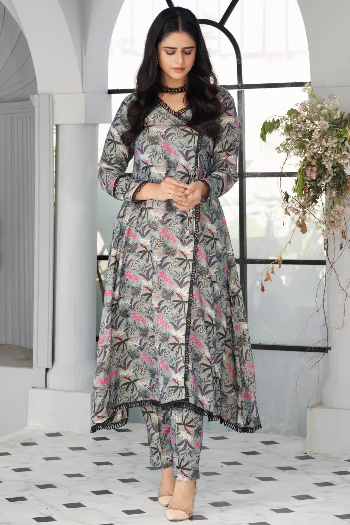 Dhanak Floral Printed Women Wear Frock Co-Ord-1451-Grey