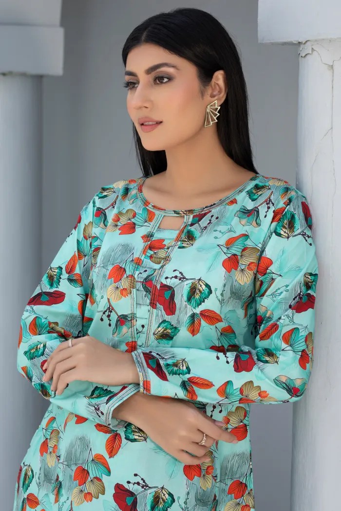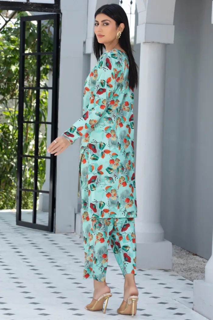 Readymade Linen Ethnic Floral Printed CO-ORDS-1452-Aqua