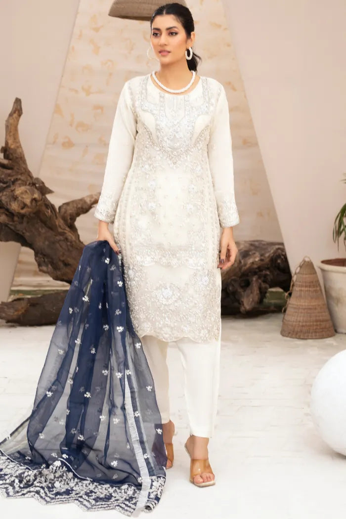 Pakistani Organza Suit Readymade Baroque-1441-PEARL BLUE