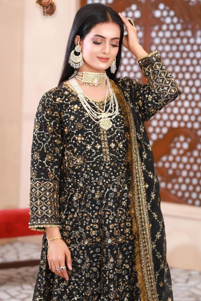 Front: Sequin Embroidered chiffon with Tilla.