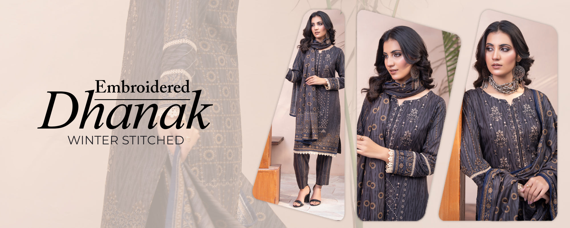 Pakistani Black Grey Floral Printed Dhanak Suit for Women – Winter Designer Collection